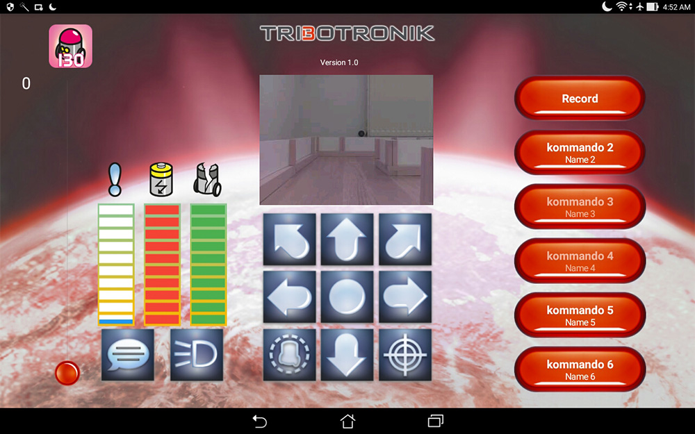 When using buttons on a touchscreen instead of tangible buttons, it's easy to miss them. However, there are numerous mobile games that deal with the same problem. So I played various games from racing to shooters to get some ideas for a better solution. Based on my learnings, I came up with a new organisation of the interface. I exchanged the movement buttons for a joystick (so at least you have to hit only one button). I also moved the most important buttons for playing to positions that are easy to reach when holding the tablet like a gamepad.